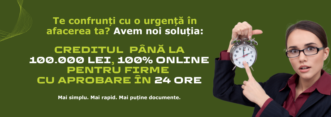 Aplici online în câteva minute și primești răspuns în 24h. Fără drumuri, fără birocrație, doar soluții clare pentru afacerea ta.